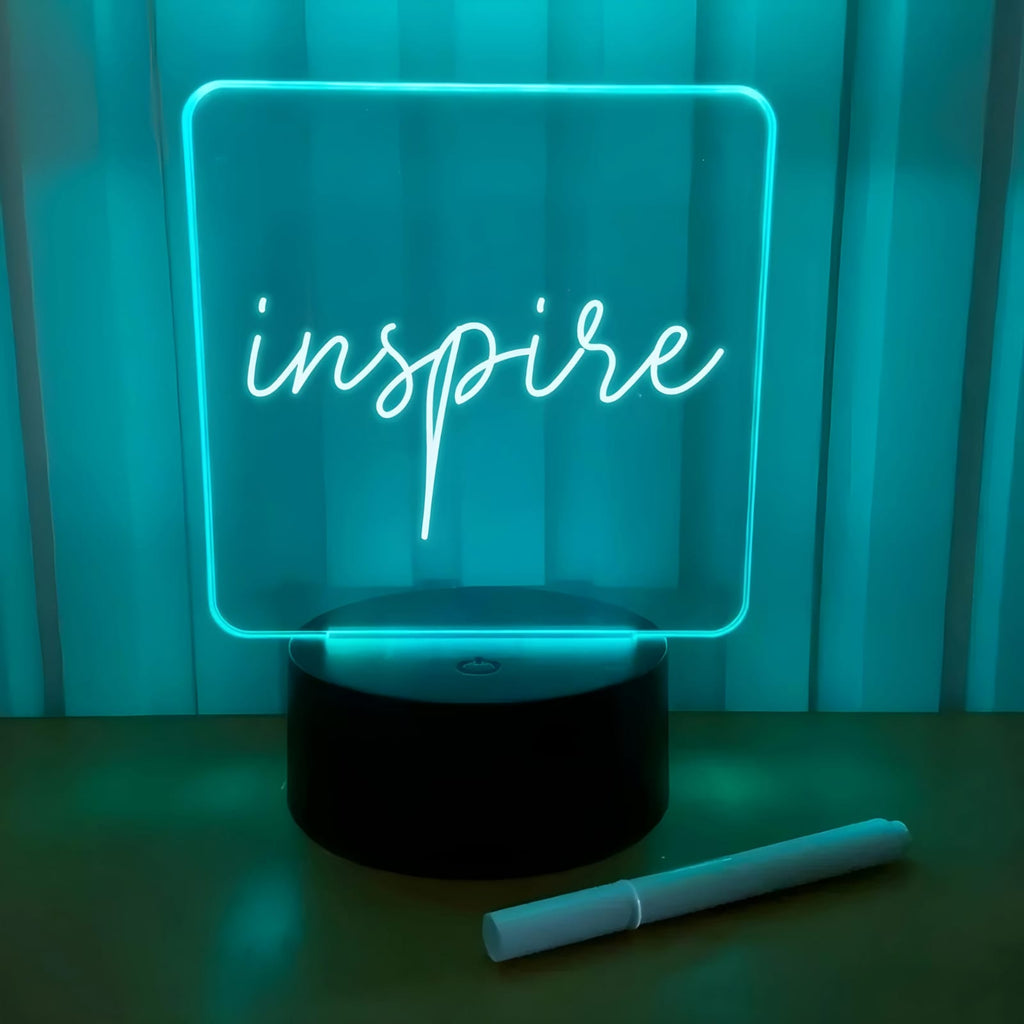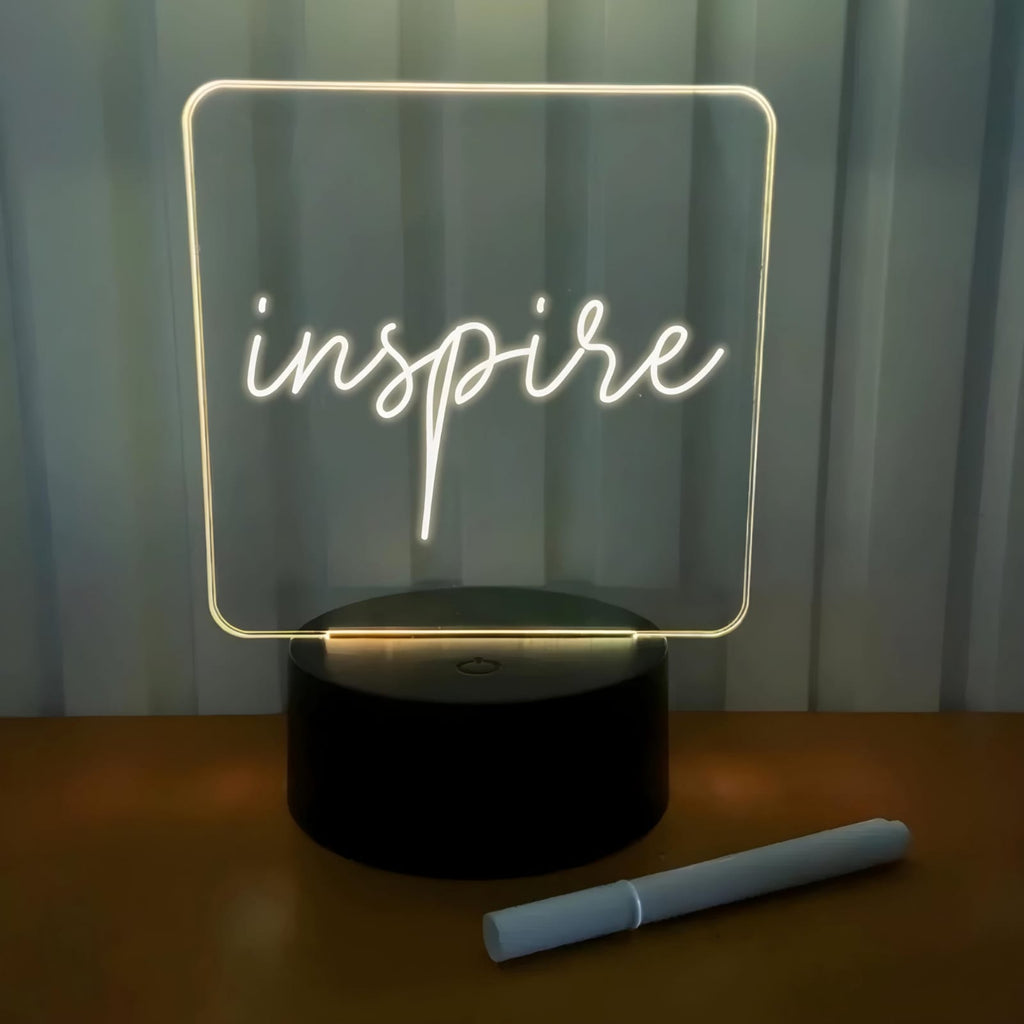 A luminária tem um lindo efeito 3D de ilusão óptica, que se torna possível devido à luz acoplada em sua base. Ao ser projetada na lousa de acrílico, o desenho é transformado em um 3D iluminado!
